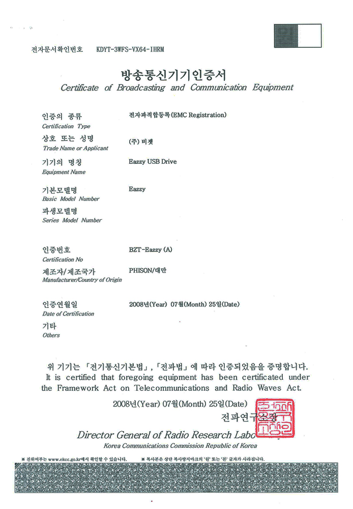 인증/특허 certificate 제품인증서 특허 프로그램등록증 회사인증서 SecuYouSBCC인증서 Zoom in 한국인터넷진흥원2009. 09. 16 SecuYouSBGS인증서 Zoom in 한국정보통신기술협회2008. 05. 14 비젯로고상표및서비스등록증 Zoom in 특허청2008. 09. 22 SDACGS인증서 Zoom in 한국정보통신기술협회2014. 11. 03 SDAC상표등록증 Zoom in 특허청2015. 04. 08 Eazzy USB Drive방송통신기기인증서 Zoom in 전파연구소2008. 07. 25 Virus Chaser USBCE인증서 Zoom in IST2005. 03. 18 Virus Chaser USBFCC인증서 Zoom in TOKIN2006. 01. 24 Virus Chaser USB정보통신기기인증서 Zoom in 전파연구소2006. 01. 26 바이러스 방역 장치 및 시스템 Zoom in [제10-0713128]특허청2011. 12. 02 보조기억매체의 보안관리시스템 및 이를 이용한 보안관리 방법 Zoom in [제10-0975133]특허청2010. 08. 04 스마트 유에스비 저장장치와 그를 이용한 소프트 스마트카드시스템 및 ... Zoom in [제10-0720374]특허청2007. 05. 15 악성코드 및 바이러스 치료 시스템 및 치료 방법 Zoom in [제10-0648604]특허청2006. 11. 15 휴대형저장장치를 이용한 온라인 증권거래장치 Zoom in [제10-0753641]특허청2007. 08. 23 [출원중] 서버 및 네트워크 장비의 직접접근 제어시스템 Zoom in [제10-2014-0192591]특허청2015. 09. 08 SecuYouSB Zoom in 한국저작권위원회2014. 09. 03 Login Safer Zoom in 프로그램심의조정위원회2006. 11. 22 Net Guard Zoom in 프로그램심의조정위원회2006. 11. 22 PC Guard Zoom in 프로그램심의조정위원회2005. 03. 03 Virus Chaser USB Zoom in 프로그램심의조정위원회2005. 03. 03 스마트드라이브 USB Zoom in 프로그램심의조정위원회2006. 11. 16 사업자등록증 Zoom in 국세청2014. 05. 21 중소기업 확인서 Zoom in 중소기업청2015. 04. 06 벤처기업 확인서 Zoom in Klbo 기술보증기금2015. 11. 28 부가통신사업 신고증명서 Zoom in 서울전파관리소2015. 02. 24 소프트웨어사업자 신고확인서 Zoom in 한국소프트웨어산업협회2015. 04. 28 기업부설연구소 인정서 Zoom in 한국산업기술진흥협회2015. 02. 17 통신판매업신고증 Zoom in 서초구청2015. 02. 23 INNO-BIZ 확인서 Zoom in 중소기업청2010. 04. 07